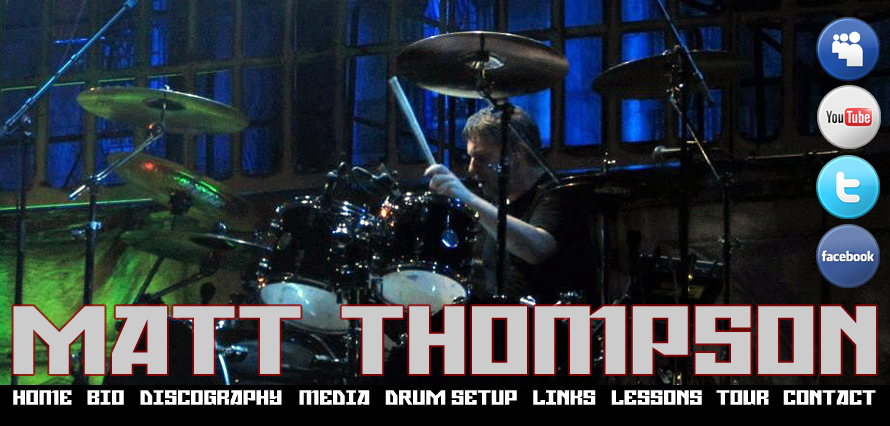 Nov. 2017: King Diamond 2017 is in the books, Santiago Chile SGL Festival was awesome, great people, great show! I had a great conversation with King in the airport yesterday about plans for 2018. It's always exciting to listen to his ideas and his passion, next year should be another great King Diamond year! My Celtic rock band Rathmore is getting off the ground very quickly and we are booking some great shows for next year. Whakatane Studios (my home studio) is humming along and keeping me busy, contact me for rates and specs! I will continue to attempt to get Shaolin Death Squad to do something. We have lots of new music and little time. I am always accepting students locally and through Skype/Facetime. Cheers and Happy Holidays, matt t \m/ \m/ July 2017: Update: Stardate July 2017, So far this year played 2 shows with King Diamond. 1 in Mexico City, 1 in Brazil. Both were amazing shows. In Mexico we lost Erling Sibbern, King's head of security and assistant since long before I joined. Erling and I became great friends in the years that I knew him. He loved my daughter and would spent lots of time with her. I'll miss you Erling! Whakatane Studios, my home studio has been a great addition. There are some projects I played on that will be released soon and some that are ongoing. Kill Ritual and Wings of Dahak will be released in the fall. My tracks with Deathriders (Neil Turbin, the original Anthrax singer) are sounding amazing and that is ongoing. Contact me for information, let me play on your tracks! Aghora 3 is nearing completion and we hope for a release this year. Shaolin Death Squad remains active, we have a show August 3rd at Lola's in Ft. Worth. My Celtic rock band Rathmore has some exciting announcements impending. I am always accepting students locally and through Skype/Facetime. January 2016: Abigail Live USA 2015 was a great way to end the year. It was our 3rd major USA tour in the space of a year. I love it! Touring with Exodus was the icing on the cake. We will perform Abigail in its entirety this summer in Europe, watch kingdiamondcoven.com for dates. Shaolin Death Squad has released a new EP called "As You Become Us", available at iTunes, amazon, all that good sh*t, jerky. Hard copies at doforitrecords.com ...Contact me for drum tracks, lessons or gigs at matt@mattthompsondrums.com August 2015: We did the Rockstar Mayhem festival in June/July/August, what a great time getting to know so many great people and playing every night in-between Hellyeah and Slayer! Check out the video Sick Drummer made of me here. The King Diamond fall Abigail tour has been announced, we will tour with Exodus! The new Shaolin Death Squad e.p. is almost finished!! Contact me if you need drum tracks or for information about online lessons! November 2014: We wrapped on King Diamond USA 2014 last week, fantastic tour as always with King. It was King's first time playing in the USA in 9 years, with the result being mostly sold out shows and awesome crowds. All my sponsors (Tama, Paiste, Vic Firth and Remo) came through big time and I played on an amazing kit, just too much fun. You can see my cymbal set up here. October 2013: It's been precisely 6 months since my last update; Aubrey turned 7 months last week. I'm feeding her Classical, Romantic, Bird and Diz, classic metal like Rainbow, Deep Purple and Priest but she prefers to watch Taratabong. OK, fine. I've been with King Diamond for 12 years and it keeps getting better. Summer '13 was unreal. Every show was great, I got to see old friends across Europe and make new ones. We played mostly festivals with a few one-off shows, all amazing. When the band and crew get together it's like a class reunion. We are having a blast playing again, and I can't wait to do it again! Which brings me to: Japan! We will headline the "Loud Park" festival in Tokyo on October 20th with lots of great bands, here is the link: http://www.loudpark.com/13/ After Japan, we will concentrate on new music until next summer, we are confirmed for Wacken '14. Wacken has always been a goal of mine, either to play OR attend, looks like I'll have a good seat. More European festival announcements are expected to follow. I'm already excited to get back to the metal fests! Shaolin Death Squad will play at the Do For It Records Halloween shows again this year. We are doing Journey this year and it is extremely fun. The White Swan is totally nailing Steve Perry! We are also working on a huge amount of new music, there is some very challenging material. Expect a new CD somewhere around April of 2023. I'm having a blast teaching drums, guitar, piano and vox at Hall Music Productions in Southlake, TX. It's a great facility packed with great teachers, as well as a world-class recording studio. There are some exciting things happening at this place! I also teach privately at my studio in Denton, TX. April 2013: My daughter just turned a month old. For her first month I concentrated mostly on singles and doubles, and some basic foot/hand rhythms. This month: paradiddles and maybe a Tony transcription. The tours with L.O.D. were great times in 2012, we did two tours with Gwar and one with Fear Factory/Shadow's Fall. All were awesome experiences. Not sure if they were cooler than the NZ tours though. Also in 2012, King Diamond returned. We played at Sweden Rock and Hellfest. They were great shows, huge crowds. It was a great time for everybody, the whole thing felt like a family reunion. Playing again with Andy, Mike, Hal and King was just nails, man. So...very happy that we'll do it again this year! We do around 12 shows at festivals in Europe this summer. Shaolin Death Squad is working on a lot of new music that is very challenging, so it's good that I started drinking coffee again. Our album "Intelligent Design" is being released on vinyl, so we'll relearn the whole thing and play it live in a few weeks. Cheers! Fall 2012: What a year! King Diamond has announced a festival date for next sum